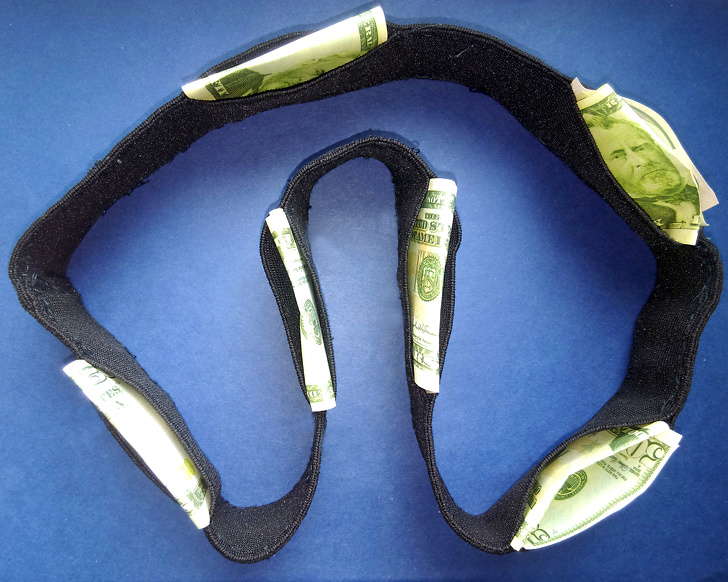 Sau khi bị cướp ở Mexico và Chile, tôi đã bắt đầu bọc tiền của mình vào phía bên trong đai quần. Tôi đeo nó bên dưới thắt lưng và khi nào cần đến tiền mặt, tôi mới tháo thắt lưng ra và lấy tiền từ chiếc túi tự chế. Để làm chiếc túi này, bạn chỉ cần mua một chiếc đai cao su rộng, gập đôi nó lại, và khâu nó lên, sao cho khiến nó tạo thành những chiếc túi nhỏ. Thực sự rất là thoải mái khi đi ngủ với chiếc đai này vào ban đêm và bạn không còn phải lo lắng về những tên trộm.