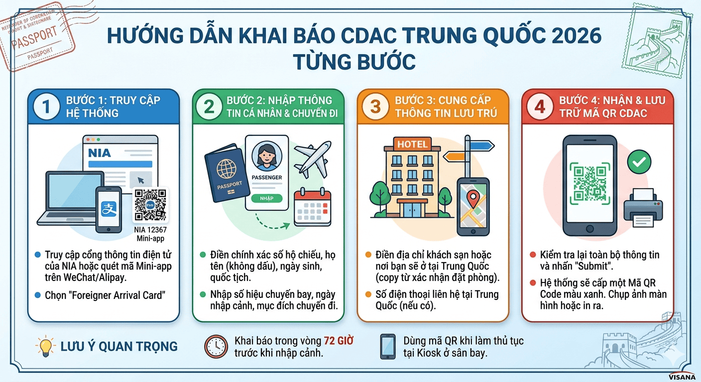>> Xem thêm chi tiết Hướng dẫn khai báo nhập cảnh Trung Quốc online (CDAC) mới nhất 2026