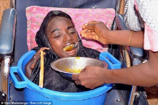 Vì cơ thể teo lại gần đến nỗi gần như không có tay chân nên hằng ngày, cô chỉ biết co mình lại trong chiếc chậu nhựa.