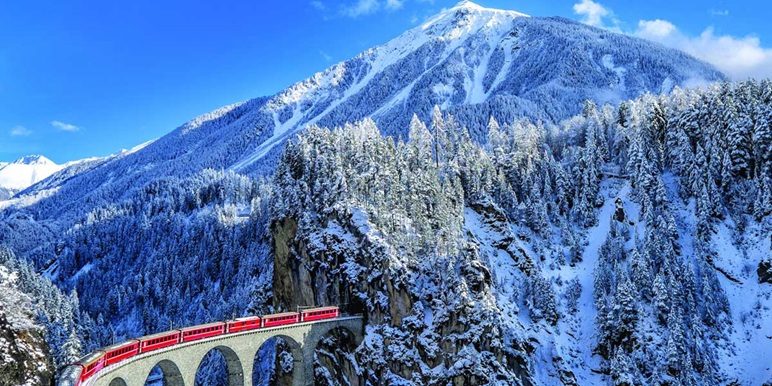 Tàu hỏa là “linh hồn” của du lịch Thụy Sĩ. Tàu chạy êm, đúng giờ tuyệt đối và khung cảnh hai bên đường đẹp như phim.