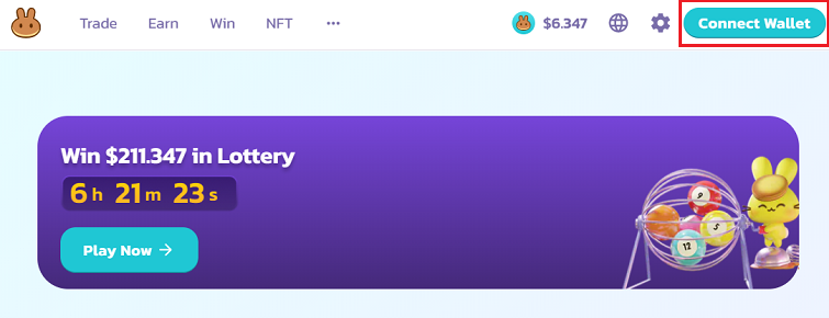 Truy cập pancakeswap.finance. Chọn Connect Wallet góc trên bên phải màn hình
