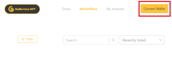 Vào chợ RACA: market.radiocaca.com/#/market-place. Kích Connect Wallet