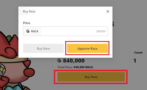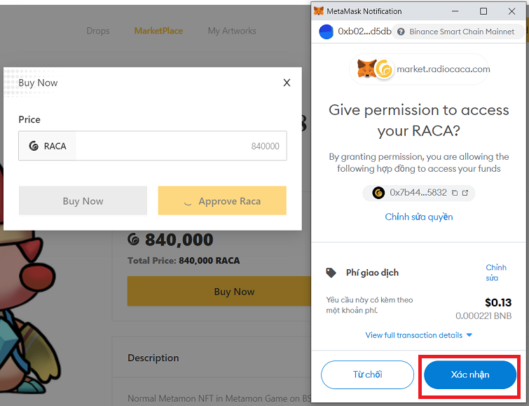Hướng dẫn cách mua Metamon, Potion và NFT# trên chợ RACA