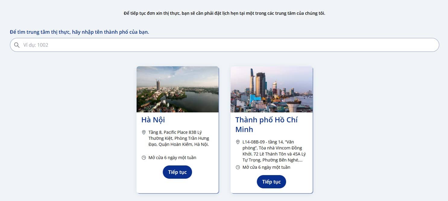 Bước 3: Nhấn chọn Trung tâm tiếp nhận hồ sơ xin thị thực Pháp (TLS) mà Bạn đã nộp hồ sơ.