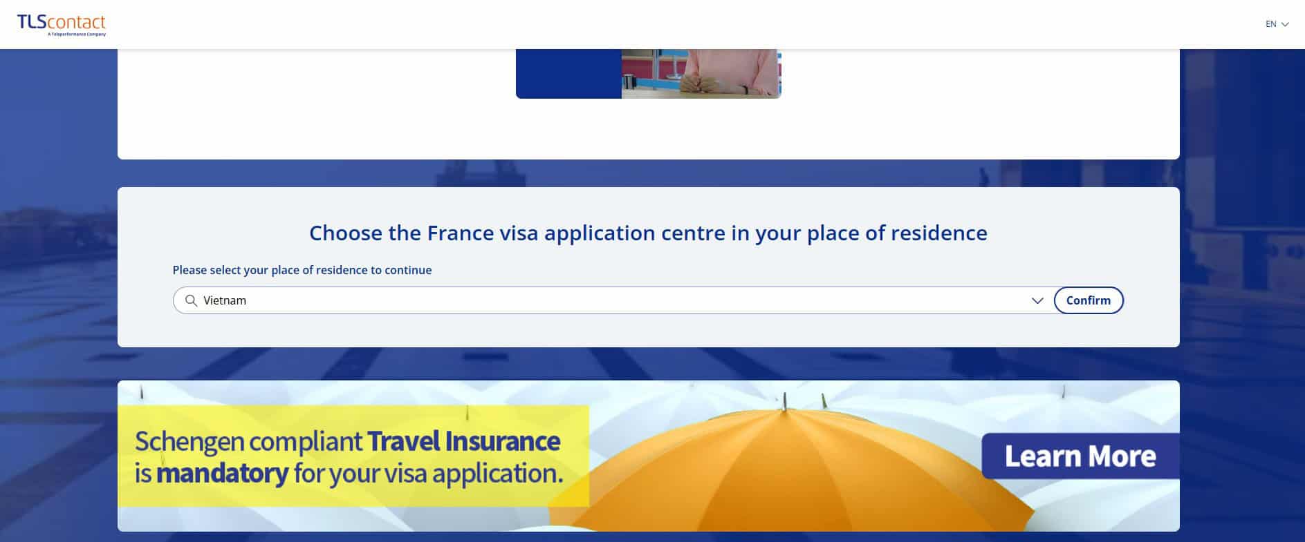 Bước 1: Truy cập vào trang web của TLScontact dành cho Việt Nam