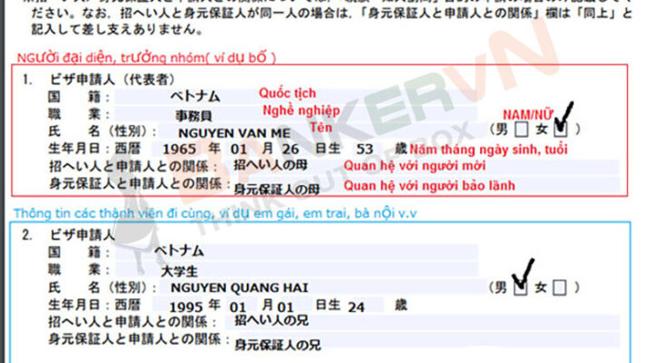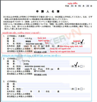 Hướng dẫn điền Bản danh sách người xin visa Nhật Bản