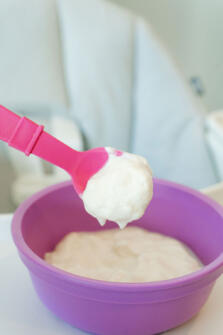 Một yếu tố quan trọng khi cho bé làm quen với thức ăn đặc, kể cả sữa chua, là nguy cơ bé bị nghẹn. Giờ đây, các chuyên gia không coi sữa chua là một trong những nguy cơ gây nghẹn phổ biến đối với trẻ sơ sinh, nhưng điều quan trọng là bạn phải chuẩn bị và cho bé ăn một cách an toàn. Những điều phổ biến cần lưu ý là không cho quá nhiều sữa chua vào miệng trẻ cùng một lúc và đảm bảo bất kỳ loại “hỗn hợp” nào như trái cây hoặc quả mọng cắt nhỏ đều có kích thước và độ đặc phù hợp.2