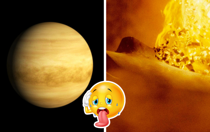 Bầu khí quyển của hành tinh này là 98% CO2 và áp suất lớn hơn 90 lần so với trên Trái đất, cộng với toàn bộ bề mặt của nó được bao phủ bởi những đám mây dày mưa với axit sulfuric. Ngoài ra, nó nóng, rất nóng, nhiệt độ trung bình đạt gần 427°C.