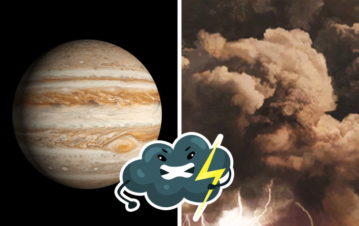 Hành tinh lớn nhất trong hệ mặt trời này cơ bản không được gọi là hành tinh vì nó không có bề mặt cứng, mà chỉ đơn giản được cấu tạo từ hydro và helium. Nó sẽ thân thiện với bạn chỉ chưa tới 1/1000 của giây. Thật vậy, chỉ cần rơi vào bầu khí quyển này, bạn sẽ chết ngay lập tức vì nhiễm độc phóng xạ. Và sau đó, nếu vẫn tiếp tục ‘sống sót’ bạn sẽ được rơi vào giữa các đám mây amoniac bị khuấy đảo liên tục bởi các cơn gió có tốc độ điên cuồng khoảng 360 km/h, tương đương sau một động cơ máy bay phản lực.