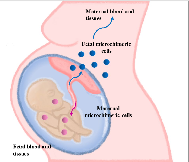 Các nhà nghiên cứu đã khám phá ra rằng các tế bào có thể di chuyển từ cơ thể người mẹ sang thai nhi thông qua cuống rốn, đồng thời chiếm giữ và lưu lại trong các cơ quan khác nhau trong cơ thể mẹ. Những cơ quan này bao gồm cơ bắp, tuyến giáp trạng, gan, tim, thận và da.