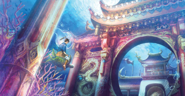 Sau đó, rùa biển đã đưa chàng ngư phủ theo cùng mình xuống thủy cung bí mật. Đến nơi, anh cảm thấy vô cùng choáng ngợp trước sự tráng lệ của nơi này, anh bèn bảo với rùa Vương rằng: “Nơi này quả là đẹp!”.