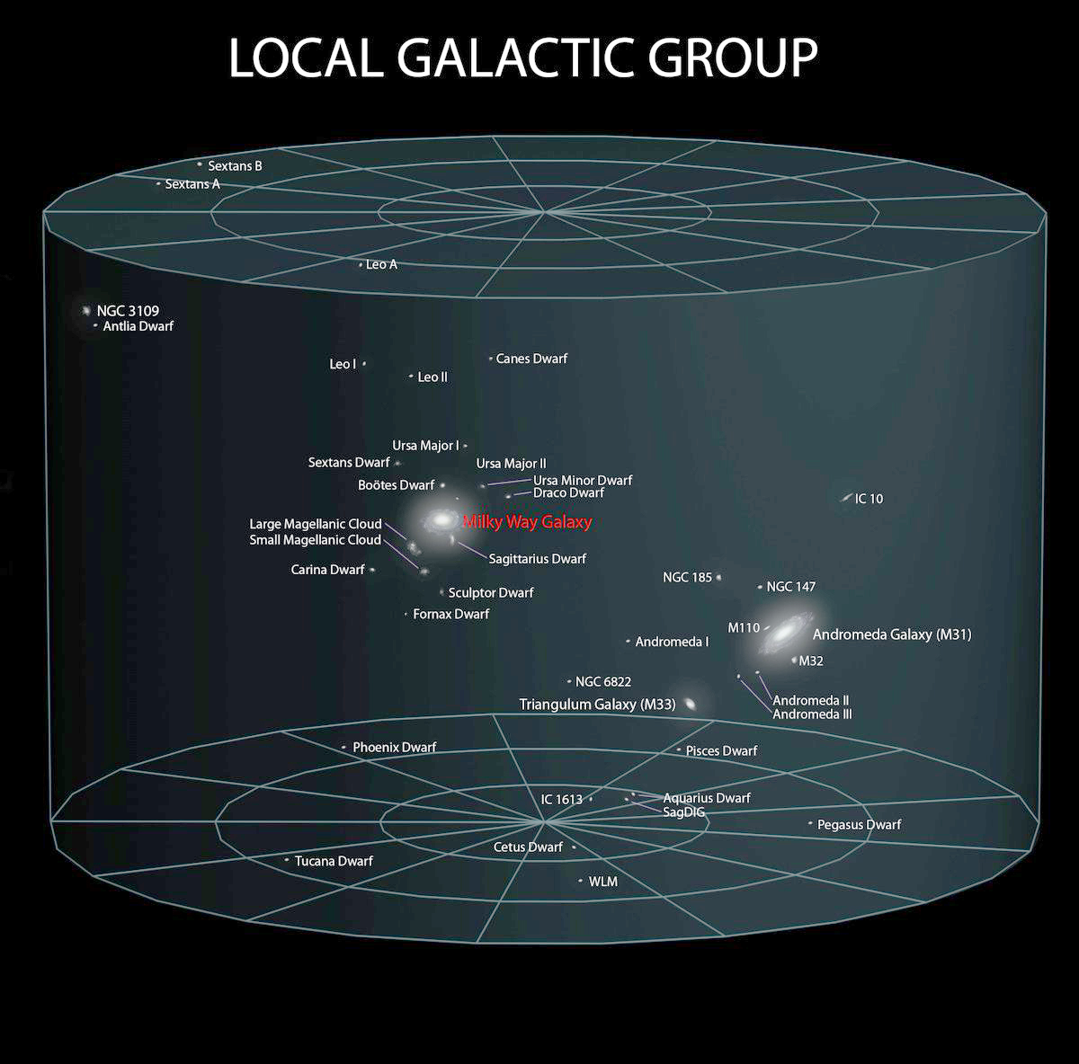 Sau khi mở rộng tầm mắt, khái niệm thời không vốn có sẽ tiếp tục thay đổi, điều này sẽ được thảo luận ngắn gọn ở phần sau. Theo hiểu biết của thiên văn học hiện đại, hệ Ngân hà mang theo bên mình một nhóm các thiên hà nhỏ gọi là “nhóm địa phương” (Local Group) vận hành trong một kết cấu khổng lồ. Trong đó, hệ Ngân hà và hệ thiên hà Tiên nữ (Andromeda Galaxy) ở bên cạnh là hai thiên hà lớn nhất trong nhóm thiên hà này.