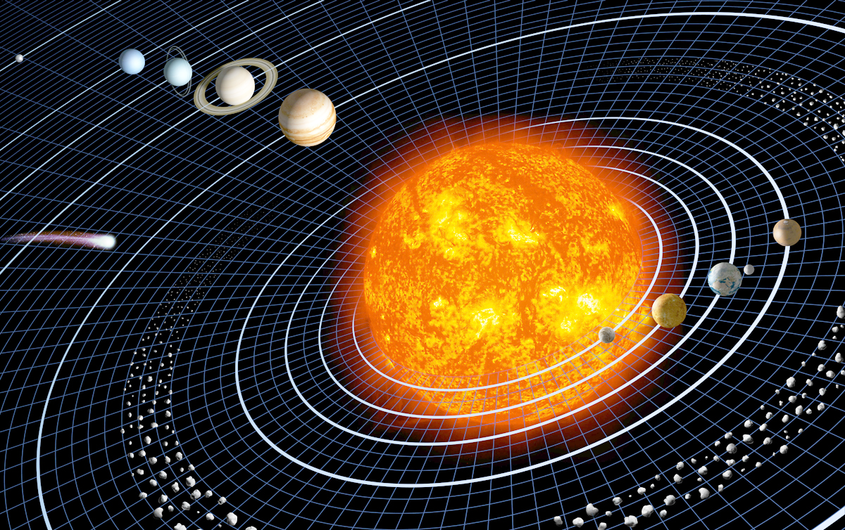 Nói một cách đơn giản, khi nói đến phạm vi hành tinh, cần xét đến tình huống thời không cong (curved spacetime). Tại thời điểm này, các khái niệm không gian về chiều dài, chiều rộng và chiều cao trong môi trường Trái đất đã ở trong trạng thái không gian và thời gian khác với thế giới bên ngoài trong sự uốn cong vĩ mô.