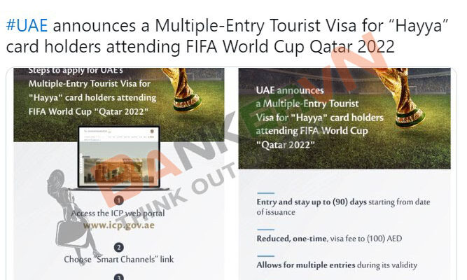 Chính phủ UAE đã thông báo trên twitter về loại thị thực nhập cảnh nhiều lần (Visa Multiple) cho những người có vé xem World Cup 2022. Chương trình nằm trong các sáng kiến của Các tiểu vương quốc Ả Rập Thống Nhất nhằm hỗ trợ Qatar đăng cai tổ chức FIFA World Cup.