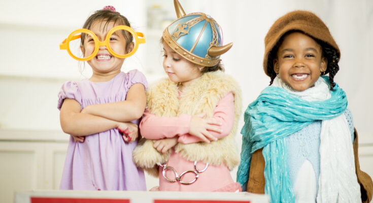 Sắp xếp các loại quần áo và phụ kiện, hoặc mời trẻ em mang theo đồ của chúng, và xem những đứa trẻ thỏa trí tưởng tượng với trí tưởng tượng của mình trong hàng giờ chơi hóa trang.